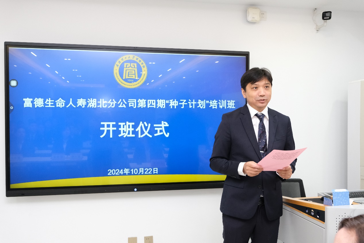 22日上午,培训班举行开班仪式。富德生命人寿保险股份有限公司湖北分公司党委书记、总经理桂衍胜先生,必赢242net官网院长陈晓芳教授、副院长张光磊教授出席开班仪式。