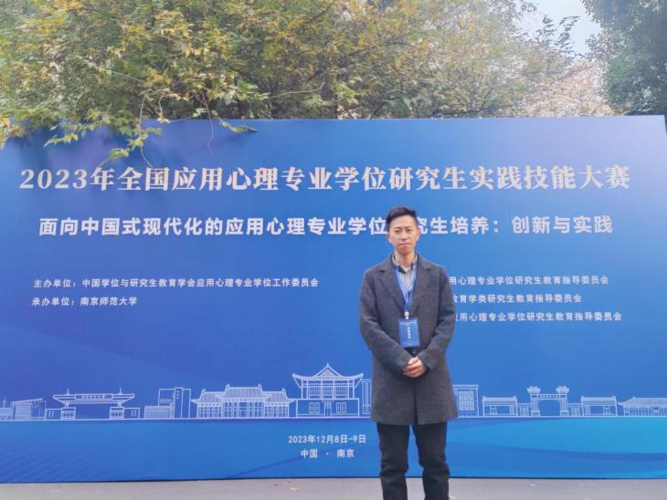 2023年全国应用心理专业学位研究生实践技能大赛于12月8日至9日在南京师范大学成功举办。本次大赛由中国学位与研究生教育学会应用心理专业学位工作委员会主办,全国应用心理专业学位研究生教育指导委员会指导,是全国应用心理专业硕士实践技能的高水平赛事。经过激烈角逐,今年会七十三老师指导的应用心理专硕吴贾超同学荣获心理咨询面谈技能比赛二等奖!