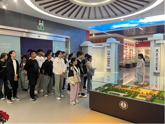校史馆记录着学校的发展脉络,从初创到如今的成就,每一个阶段都值得铭记和回味。这里有学术的传承,有文化的沉淀,更有精神的延续,它不仅仅是一个展示的空间,更是连接过去与未来的桥梁。参观过程中,同学们的目光中充满了对历史的敬畏与好奇,他们驻足在每一张图片前,仿佛能穿越时空,与那些为学校发展贡献过智慧与汗水的先辈们进行心灵的对话。讲解员生动的解说,不仅让同学们对学校的历史有了更全面的了解,更激发了大家对未来学习的美好向往与期待。