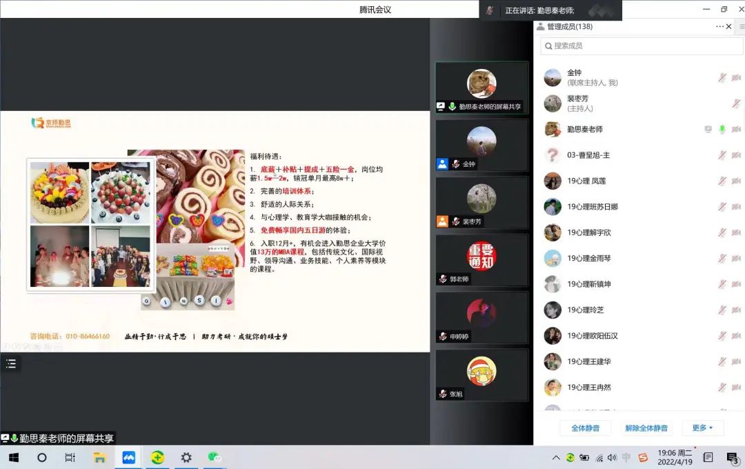 为深入贯彻党中央、国务院“稳就业”“保就业”决策部署,抓住当前毕业生就业冲刺期,推进今年会毕业生就业工作,今年会于2022年4月19日联合勤思教育成功举办jinnianhui今年会2022届毕业生专场线上招聘会。