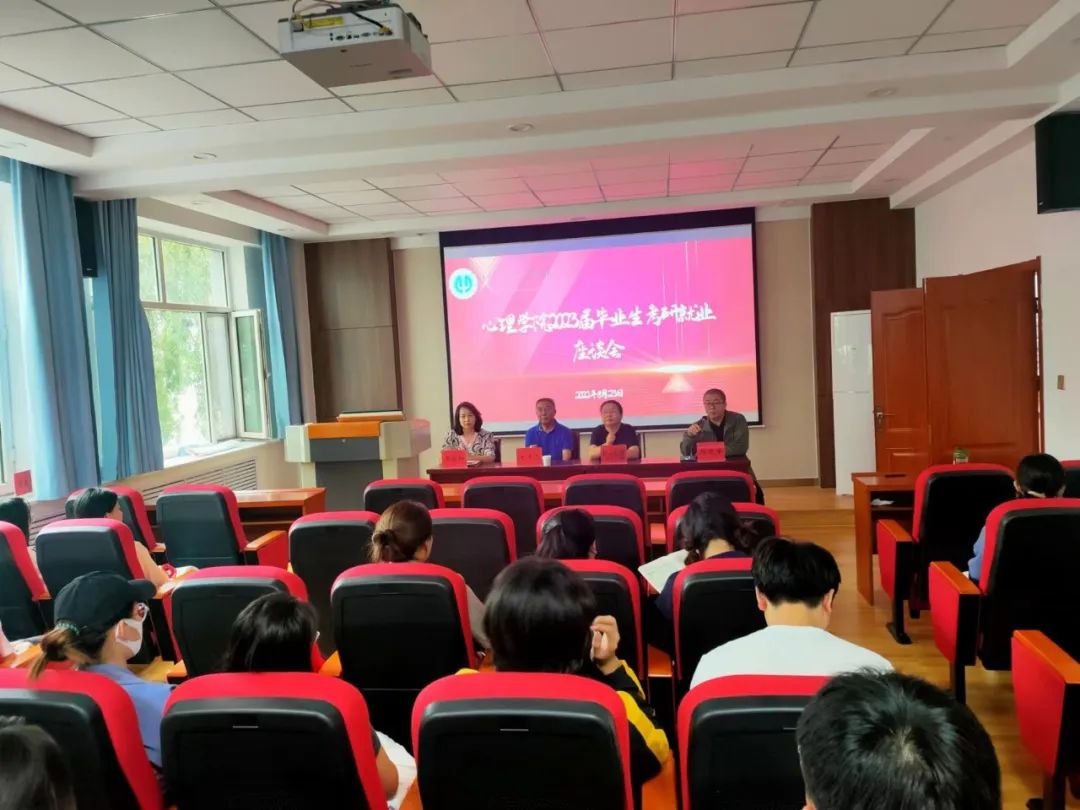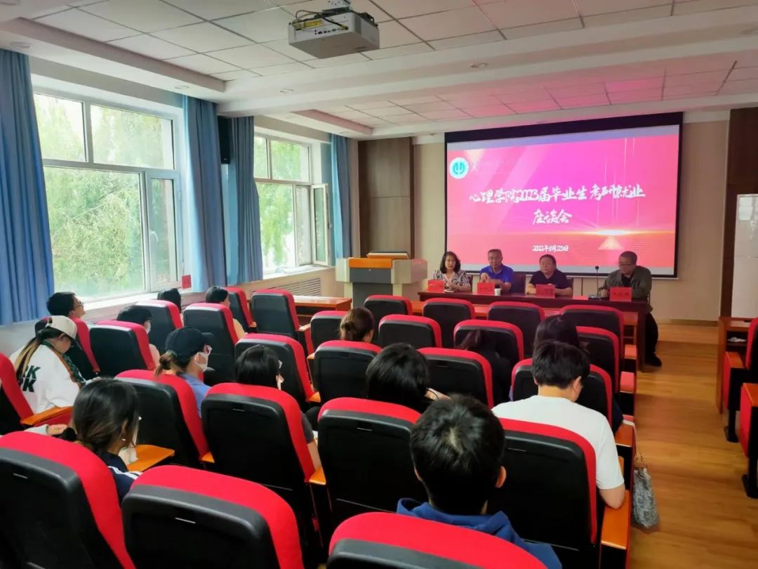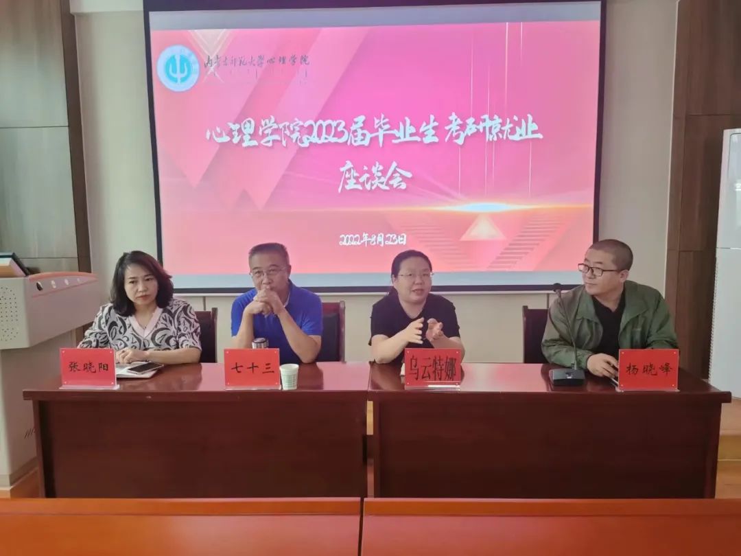 为做好稳就业、保就业工作,8月23日下午,jinnianhui今年会召开2023届毕业生考研就业座谈会。学院党委书记七十三、院长乌云特娜、院党委副书记副院长张晓阳及2019级心理学班班主任杨晓峰出席会议,2019级心理学班全体学生参会。