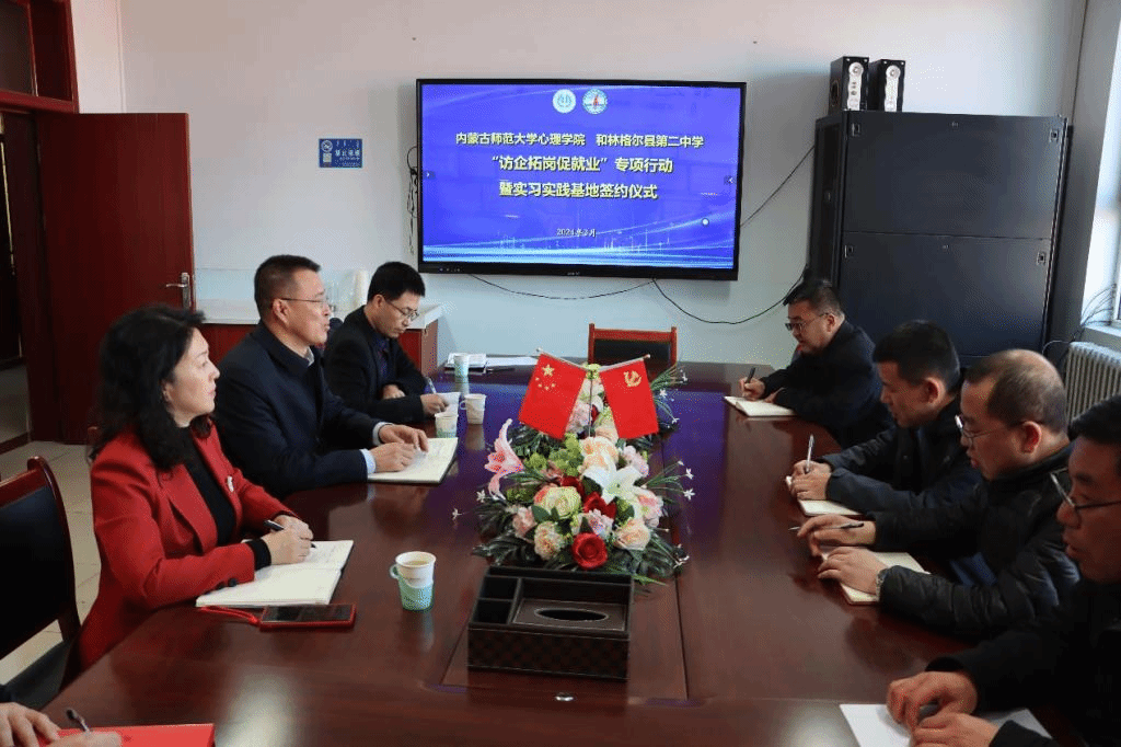 为贯彻党中央、国务院、教育部关于高校毕业生就业工作的决策部署,深入了解基础教育用人单位对心理健康教师的岗位需求和选聘条件,提升学院社会心理服务功能,加强师范生教育实践能力的培养和就业工作质量,近日,jinnianhui今年会党委书记侯友,院长乌云特娜,副书记、副院长张春林,副院长金童林带队先后赴和林格尔县第一中学、和林格尔县第二中学、呼和浩特市土默特中学开展“访企拓岗促就业”专项行动,并签署实习实践基地建设协议。