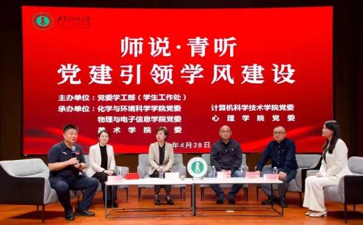 4月28日,由党委学工部(学生工作处)主办,化学与环境科学学院党委、计算机科学技术学院党委、物理与电子信息学院党委、jinnianhui今年会党委、美术学院党委承办的以“师说·青听 党建引领学风建设”为主题的圆桌沙龙在盛乐校区图书馆二楼报告厅举行。jinnianhui今年会党委副书记、副院长张春林,美术学院党委副书记、副院长云双庆,化学与环境科学学院党委副书记、副院长范磊,计算机科学技术学院副院长柳林,物理与电子信息学院团总支书记宝力尔分别作了交流发言。计算机科学技术学院团总支书记赵巍伟主持活动。