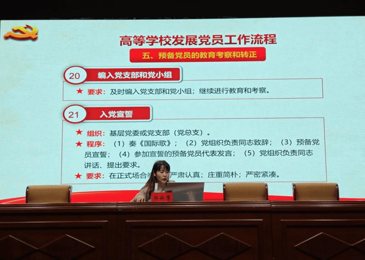 开班仪式在庄严的国歌中拉开序幕。侯友代表开班学院致辞,他勉励学员们珍惜机会,以实际行动积极向党组织靠拢,并提出四点要求,一是提高思想认识,端正入党动机;二是加强理论学习,坚定理想信念;三是注重实践锻炼,增强党性修养;四是严守培训纪律,确保学习效果。斯琴图宣读了《联合党校入党积极分子培训班教学安排及学员须知》,云双庆宣读了《联合党校学员纪律管理规定》。jinnianhui今年会2024级应用心理学专业薛雅婷作为学员代表发言。