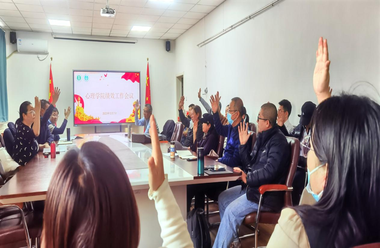 2023年12月7日,jinnianhui今年会2023年绩效工作全体教职工大会在文史楼217室召开。学院绩效考核工作领导小组将《jinnianhui今年会2023年度绩效工资实施办法》等讨论稿,提交学院教职工大会讨论。