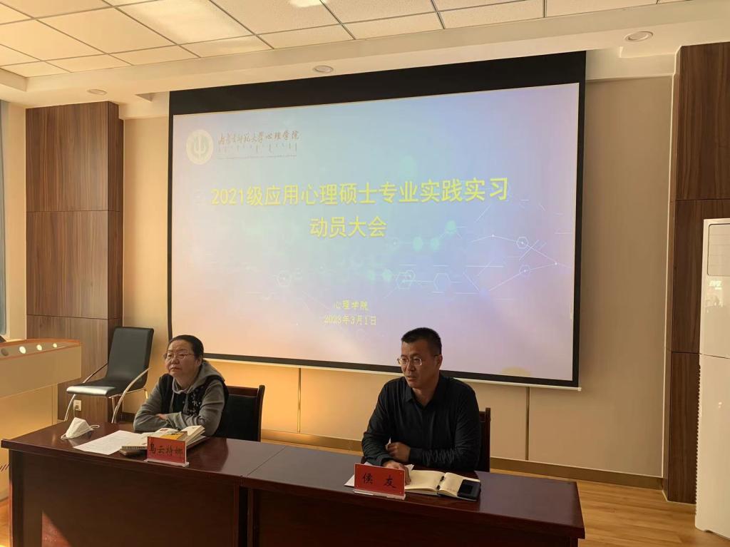 3月1日上午,今年会召开2021级应用心理专业硕士研究生实习实践动员会,院长乌云特娜教授、副院长侯友副教授,部分指导教师、班主任老师及2021级应用心理专业全体研究生参加动员会。