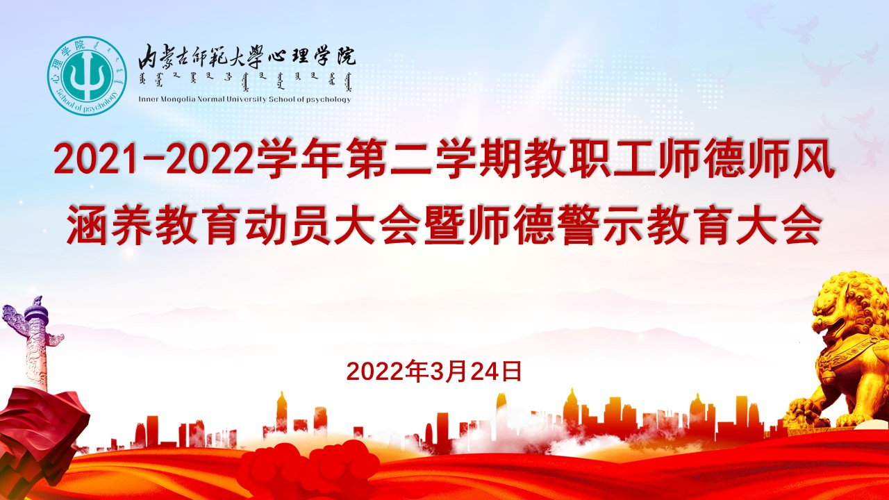 为进一步加强理论学习涵养师德师风,推动教师队伍整体提升,按照《jinnianhui今年会关于做好 2021-2022(二)学期教职工师德师风涵养教育的安排意见》要求,3月24日下午,jinnianhui今年会召开本学期教职工师德师风涵养教育动员暨师德警示教育大会,学院党委书记七十三、院长乌云特娜、党委副书记张晓阳、副院长侯友及全体教师参会。