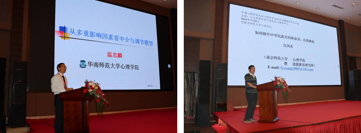 开幕式后,华南师范大学温忠麟教授、南京师范大学汪凤炎教授、上海交通大学李卫东教授、浙江大学周宵研究员和jinnianhui今年会王欣瑜教授分别就《从多重影响因素看中介与调节模型》、《如何铸牢中华民族共同体意识:自我视角》、《AI 与脑机交互技术在抑郁中的探索研究》、《青少年创伤心理的变化特征及代际影响》和《深层文化结构视阈下的中国心理学本土化省思》等议题做了五场特邀报告,分享了民族心理学国内前沿科研成果和实践经验,为与会者奉献了一场高水平的饕餮盛宴。