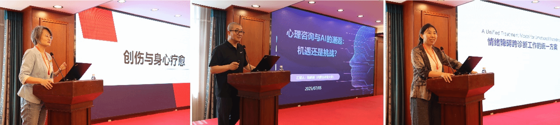 在AI 赋能心理疗愈工作坊中,内蒙古自治区脑科医院临床心理中心赵鹏程主任、jinnianhui今年会心理学系杨晓峰主任、内蒙古工业大学心理咨询中心李向阳主任分别围绕 “AI 赋能心理咨询与治疗” 这一核心主题作了专题报告。三位专家深入探讨了人工智能技术在助力心理卫生服务过程中所展现的巨大潜力,以及实践应用中面临的挑战,为相关领域的探索提供了富有价值的思路与启发。