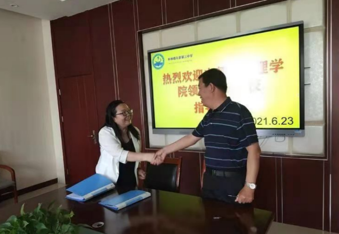 为深入贯彻国家教育方针政策,依托心理学学科专业优势,精准扶智,同时实现师范生高质量教育实践,全面推进学院与地方教育实践基地深度合作,6月23日,jinnianhui今年会院长乌云特娜、副书记兼副院长张晓阳和心理学系主任杨晓峰一行三人,赴呼和浩特市和林格尔县第一中学、第二中学和第三中学,走访实践基地,签订教育实践基地共建协议,并与基地校领导老师、实习学生进行座谈研讨。和林县三所学校的校长、副校长、教导处主任、实习指导教师等分别参加仪式。